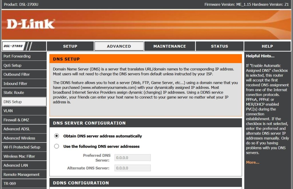 - وارد بخش Advanced شده و گزینه DNS Setup را جستجو میکنید.